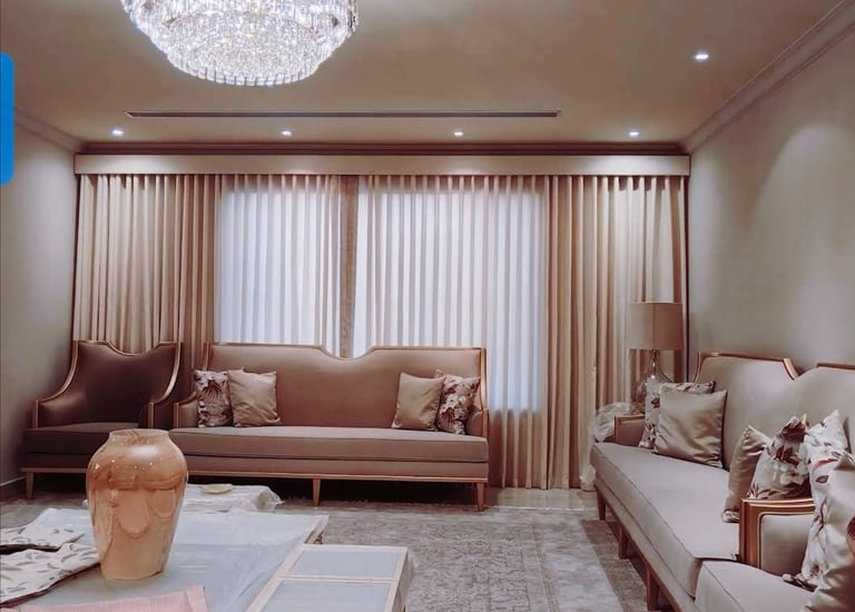 We offer a wide range of fabrics, colors, and modern styles including blackout drapes, sheer drapes, wave style, pleated, and luxury designs. Our team takes accurate measurements and provides professional installation across Riyadh.